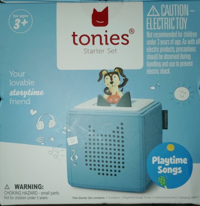 Your lovable story time friend Playtime songs includes 1 tonie box,1 playtime song tonie 1 instructions and 1 charging station