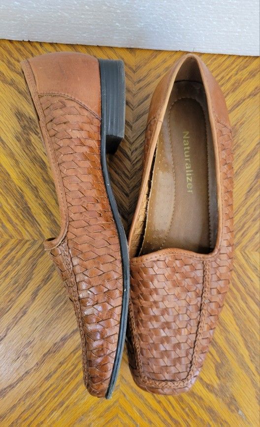 Naturalizer Tan Brown Woven Weave Leather Loafers 740N29 S63 Size M 61/2 MINT CONDIT Made in Brazil