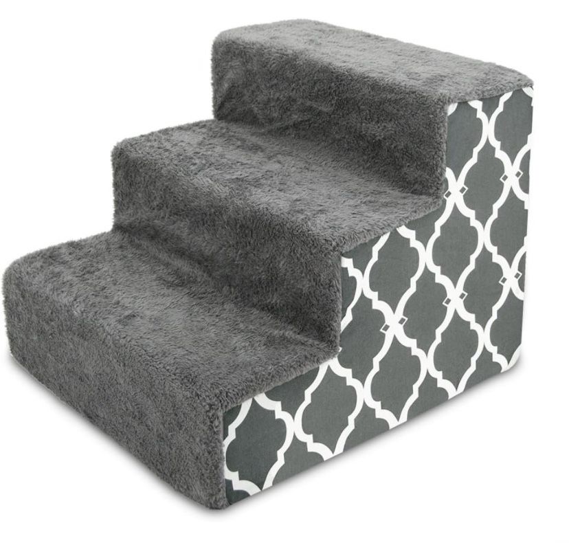 NEW 3 Step Pet Stairs High Density Foam - Gray with White Lattice