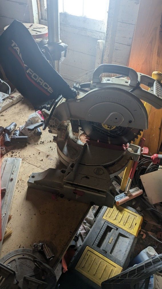 It is a power tool used for making accurate crosscuts and miter cuts. The saw is designed for woodworking projects. It features a dust bag attachment, a horizontal clamping system, and a die-cast aluminum fence with ruler markings.