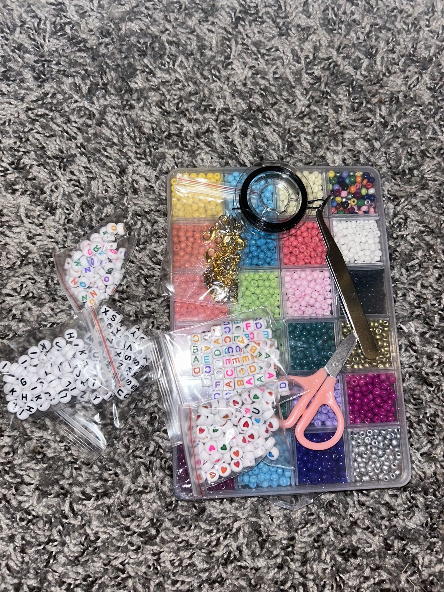 Brand new from Amazon. It comes with a variety of colors, string, tools, and clasps.