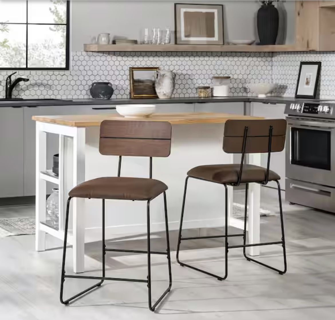25 in. Brown High Back Modern Stools (2)