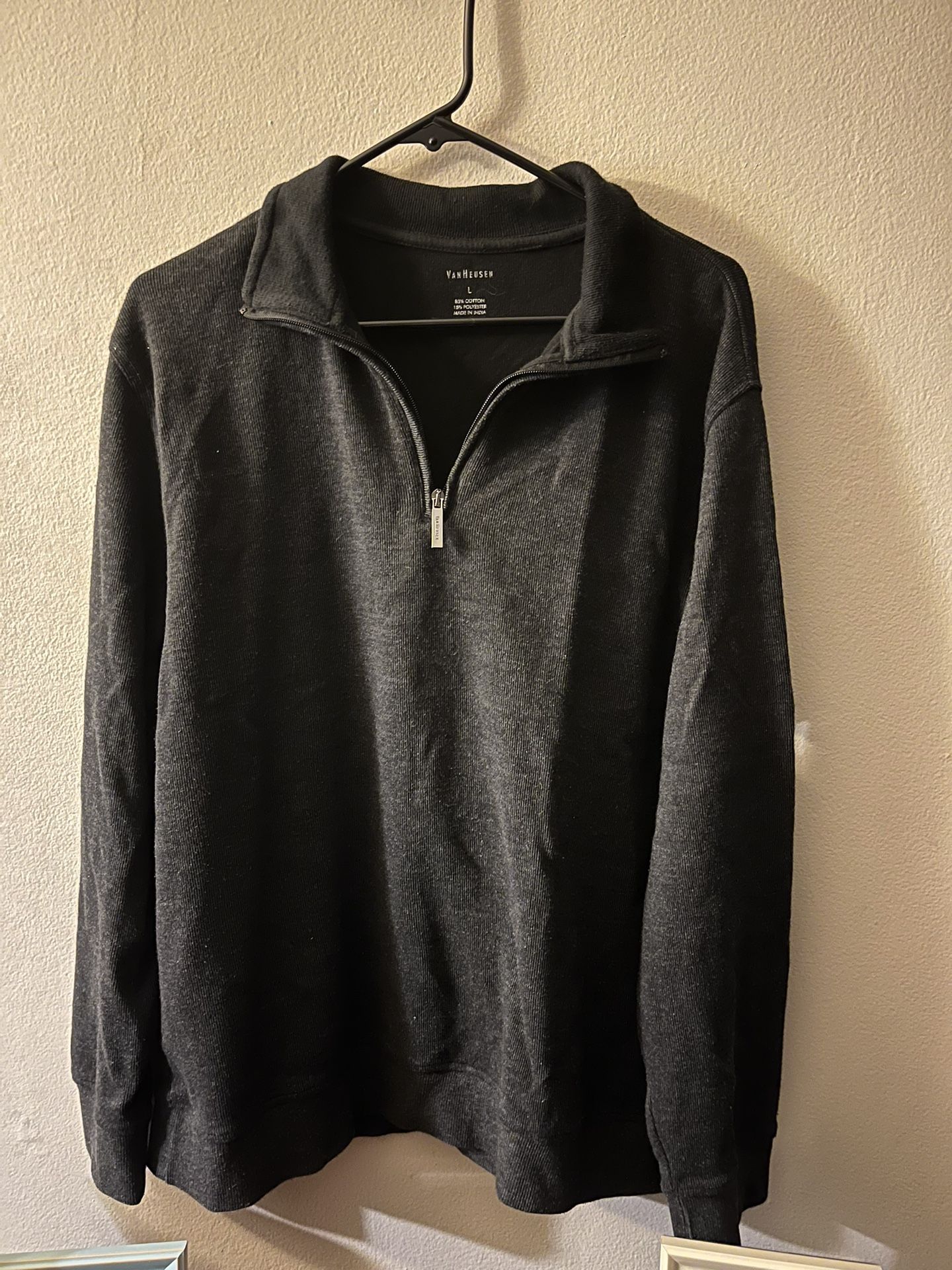 Men’s Van Heusen sweater. Black, size large. Zipper front. No tears/snags/stains. Zipper works.