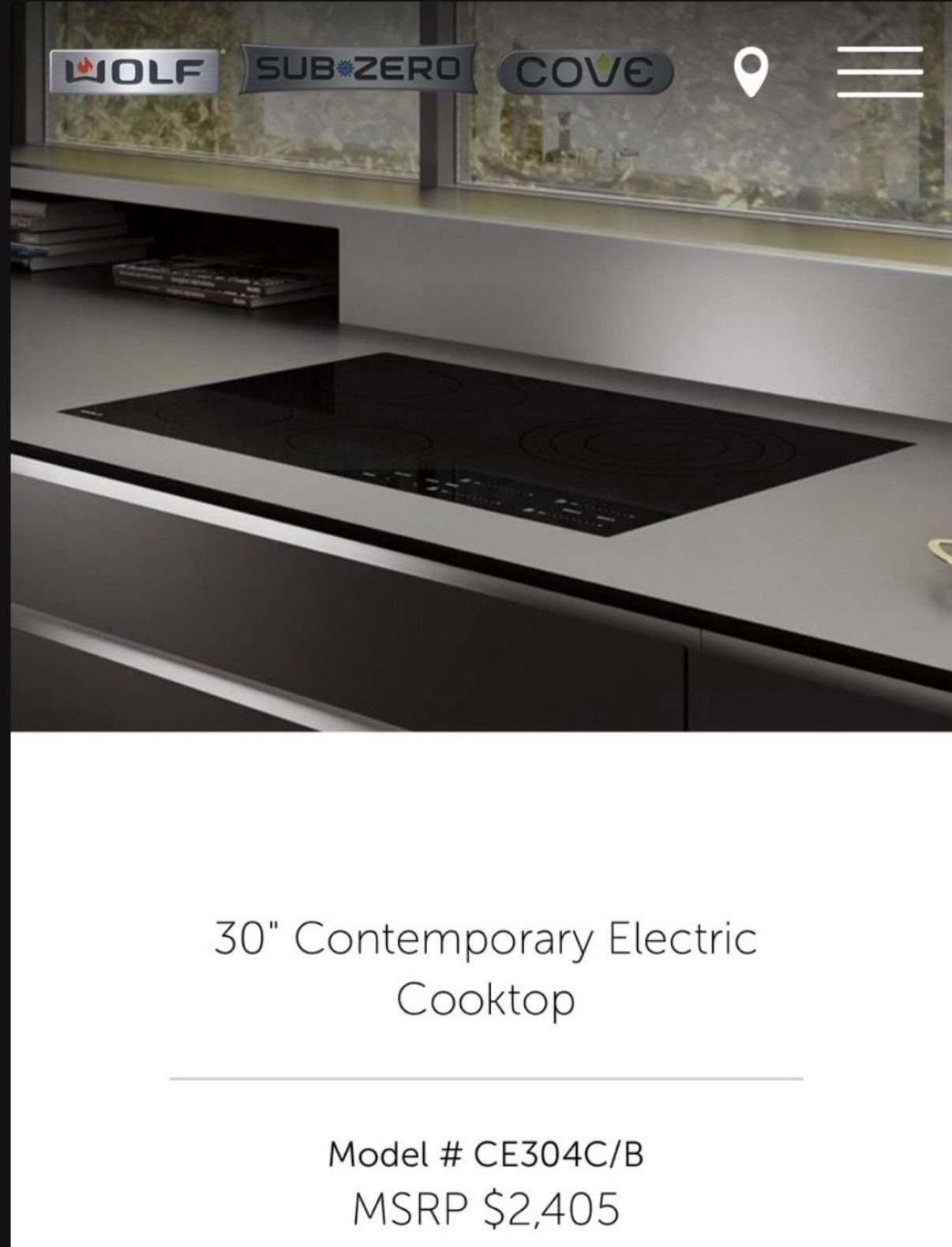 Wolf 30" Contemporary Electric Cooktop Model # CE304C/B