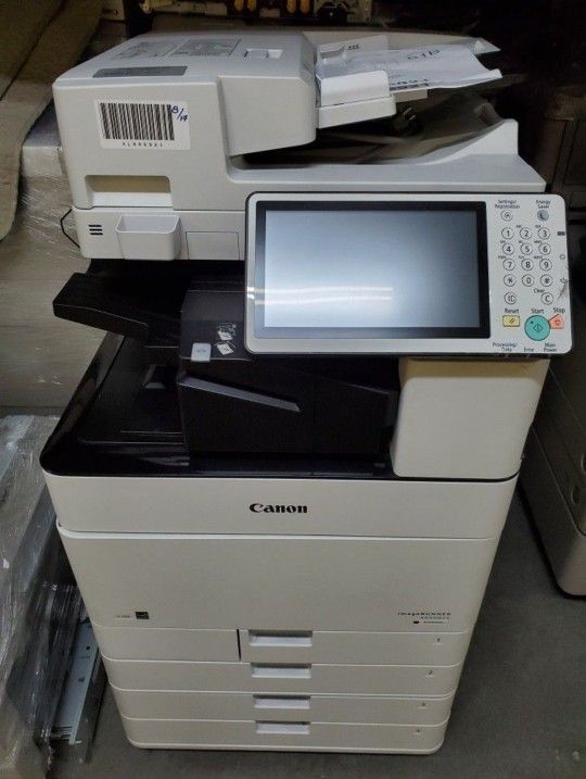 "LIKE New" Canon imageRUNNER Advance C5535i Color Copier/Printer/Fax/Scanner. Very low meter machine, ready for production. This is a mid production business class copier. It has built-in Wi-Fi, stapler finisher and external stapler unit. It comes with a 60-day warranty. We offer professional delivery and setup for an additional fee, or free pickup in Paramount. This machine is a Mercedes-Benz compared to any other brand out there. It's replaced many Sharp, Konica, HP and Ricoh printers in the field. Give us a call, we have 26 years of experience.