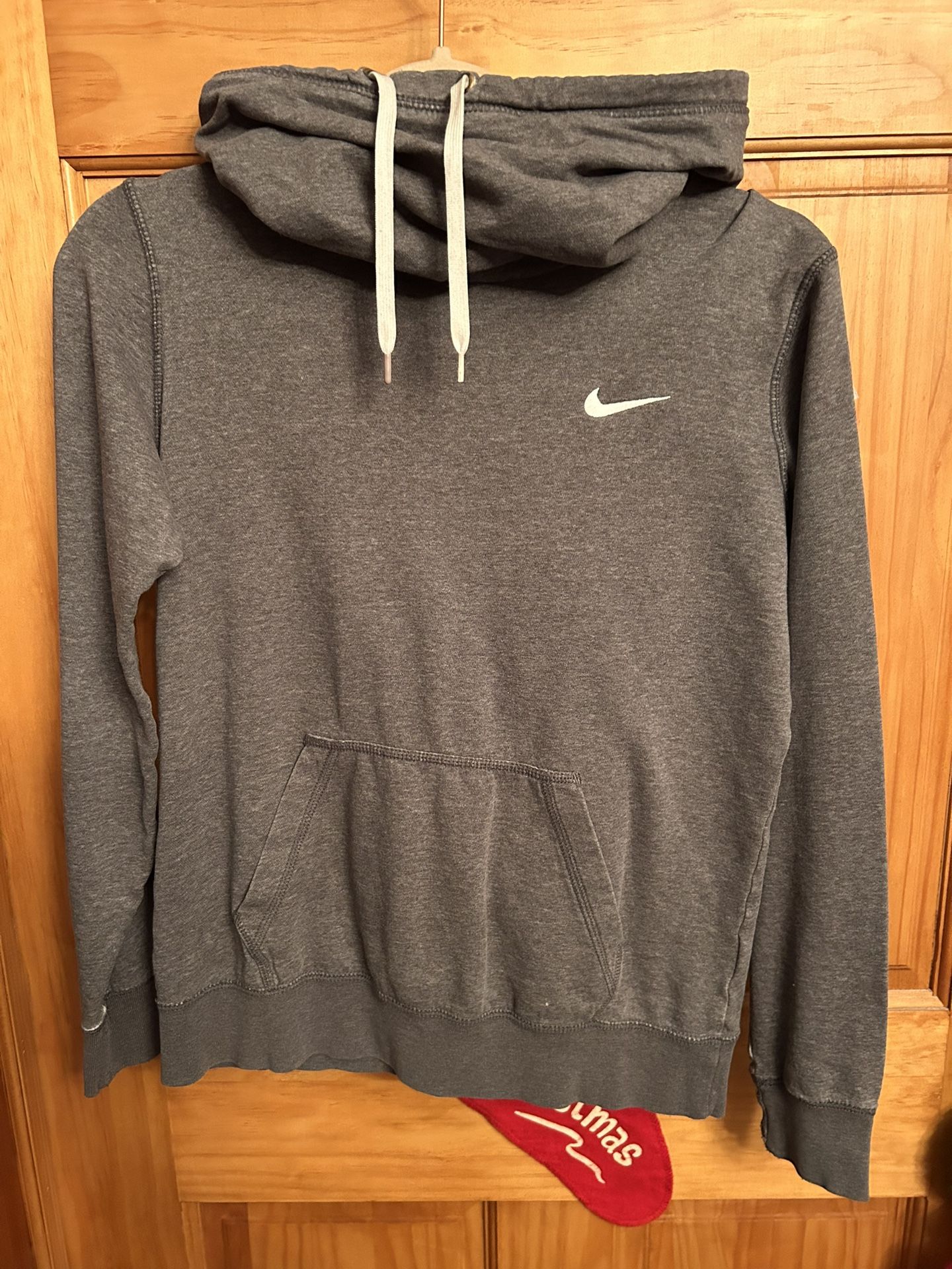 Nike Hoodie Womens Medium Pullover High Neck Drawstring Hood Inner Fleece Gray