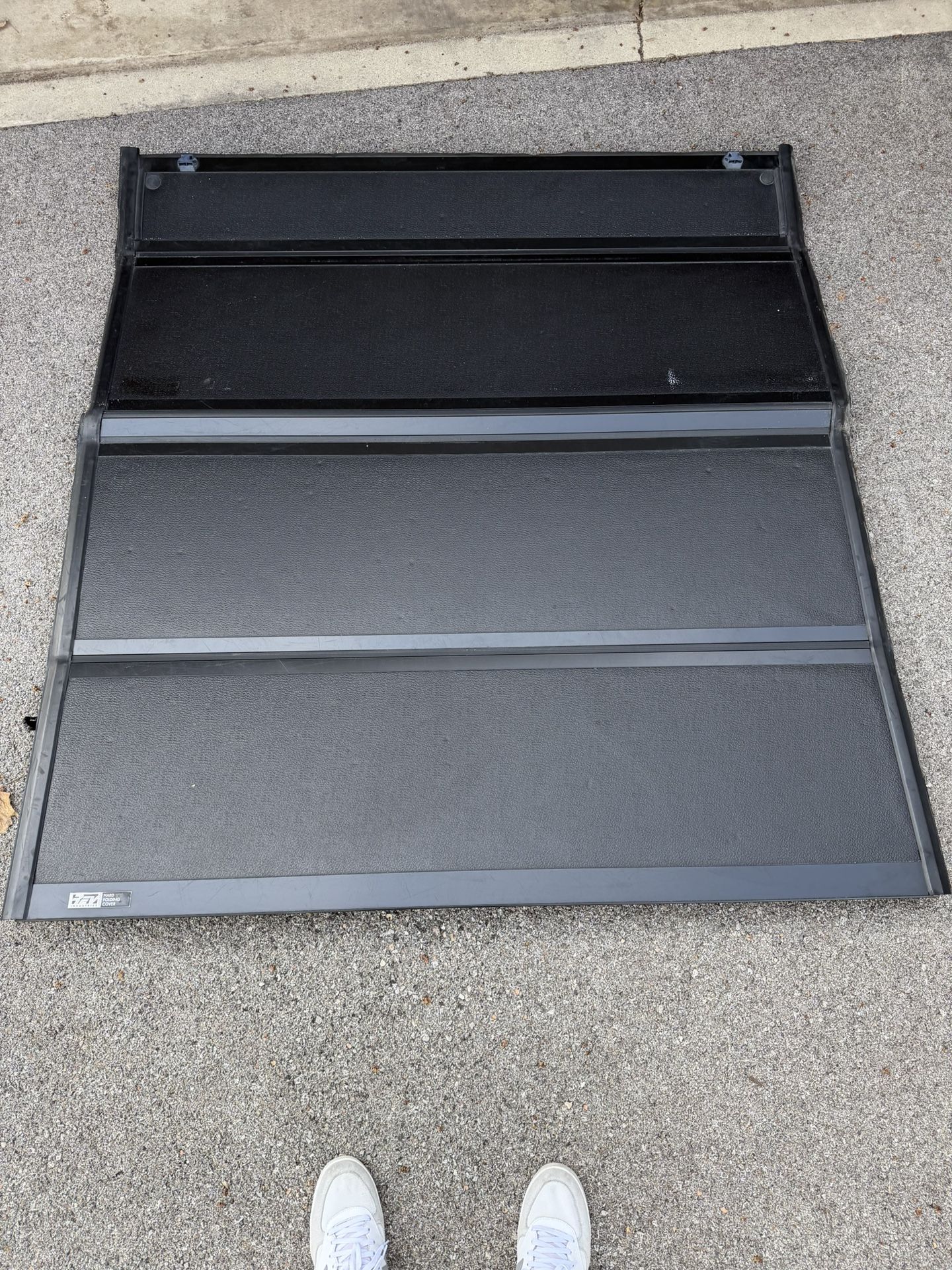 Tonneau truck bed cover. REV industries. Missing a washer for the bolt but missing since I had it and no issues. Normal wear and tear scuffs dents and little rust pictured above. Clips and folding/unfolding the bed works perfectly.