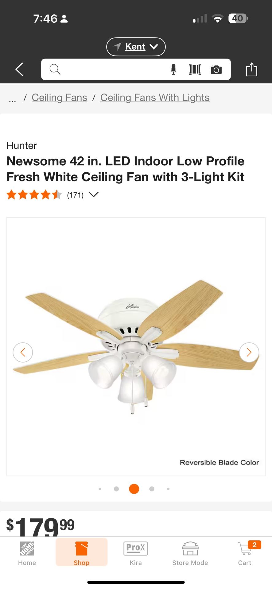 Hunter Newsome 42” Ceiling Fan With Reversible Fan Blades