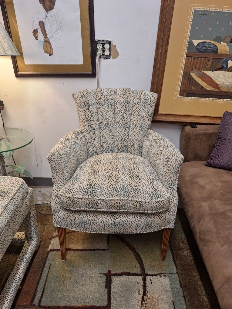 Mid-Century Style Accent Chair Chic vintage accent chair with classic mid-century lines. (Please click More for dimensions) Features a curved channel-back design, tapered wood legs, and neutral textured upholstery that works with almost any space. Comfortable and sturdy — perfect for a reading nook, bedroom, or MCM-inspired living room. (Reasonable offers are only accepted, Only at the time that customer has come to view) Dimensions: -35" Height x 26.5" Width -20" x 18.5" (Seat) -16" (Floor to Seat) View & PIck up @ 3217 Woodson Road Breckenridge Hills, MO 63114 Closed Tuesdays and Thursdays Local Delivery within 5 miles $60 Great vintage condition.