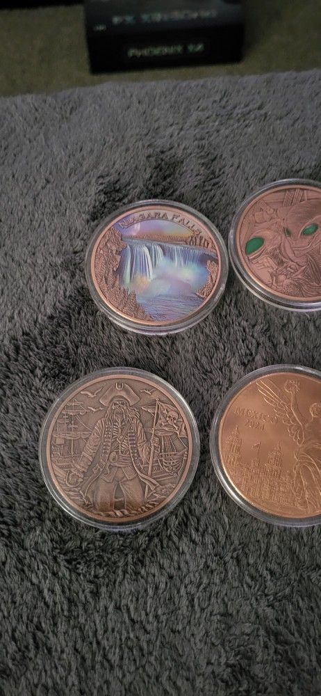 8 - 5oz copper rounds , very cool rounds with some amazing detail!! The kraken, wolf and alien react to uv light as well. Asking $110 for the lot. Will sell separately just ask for price on what one you like