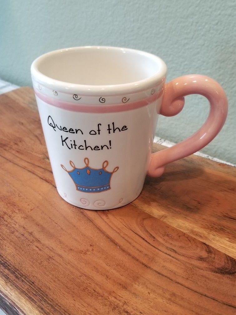 Oversized mug by Ganz. White with pink accents and handle. Holds up to 16 ounces of your favorite beverage! Mug is 4.5" h x 4" w (without handle); 4.5" h x 6.25" w (with handle).