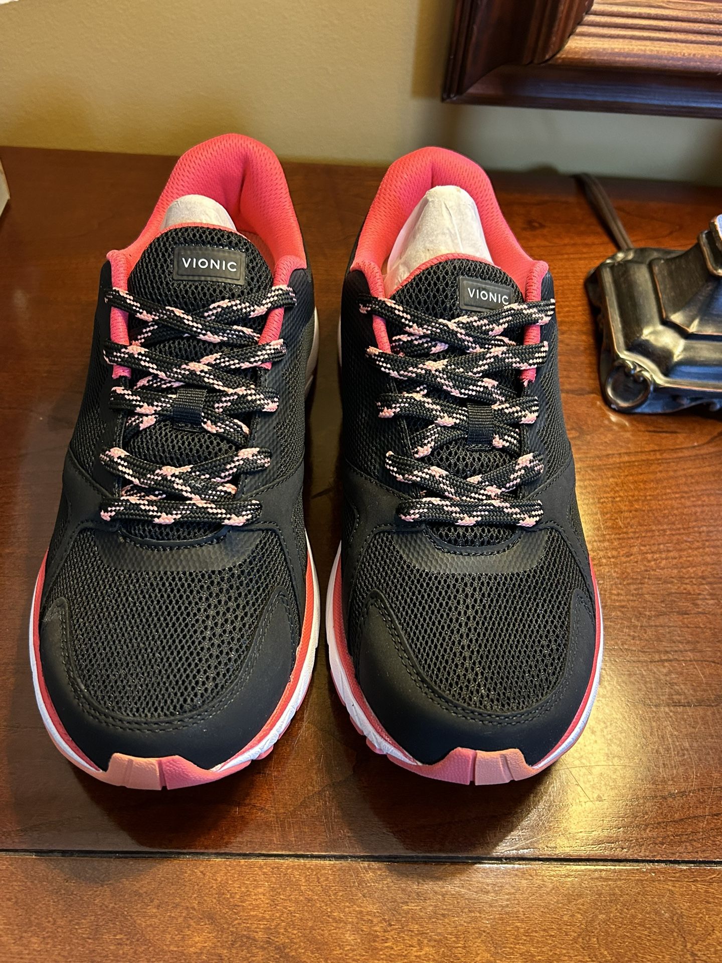 NEVER WORN Black with salmon-colored accent Vionic Walking shoes. Size 9.5 (seem true to size).