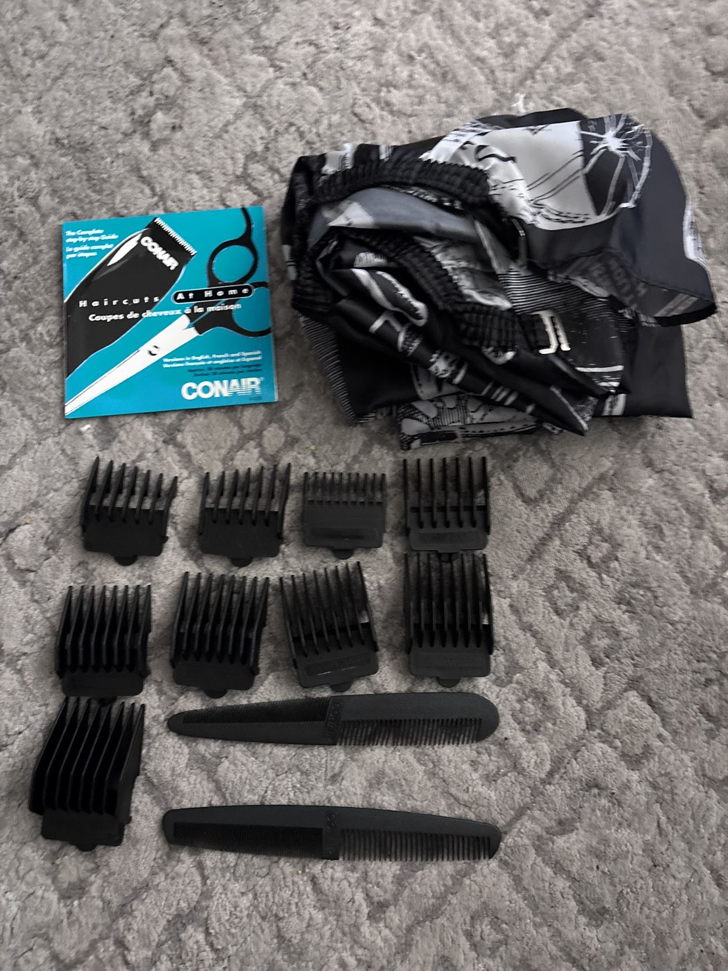 Has clippers a video on how to and a cape with combs