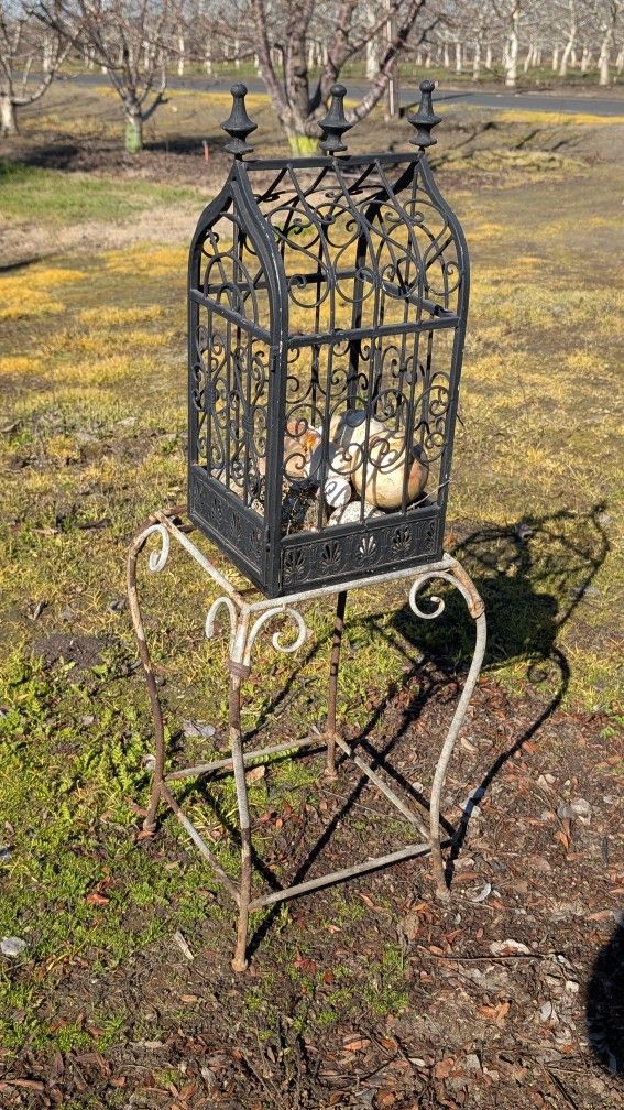 45" Tall Ornate Metal Birdcage on Stand – Vintage Gothic Garden Decor