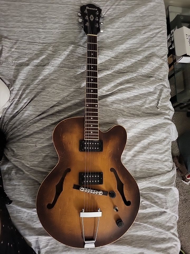 This is an Ibanez AF55-TF (Tobacco Flat finish) from the Artcore series — a full-hollowbody electric guitar designed for jazz, blues, rockabilly, and other warm, resonant tones.