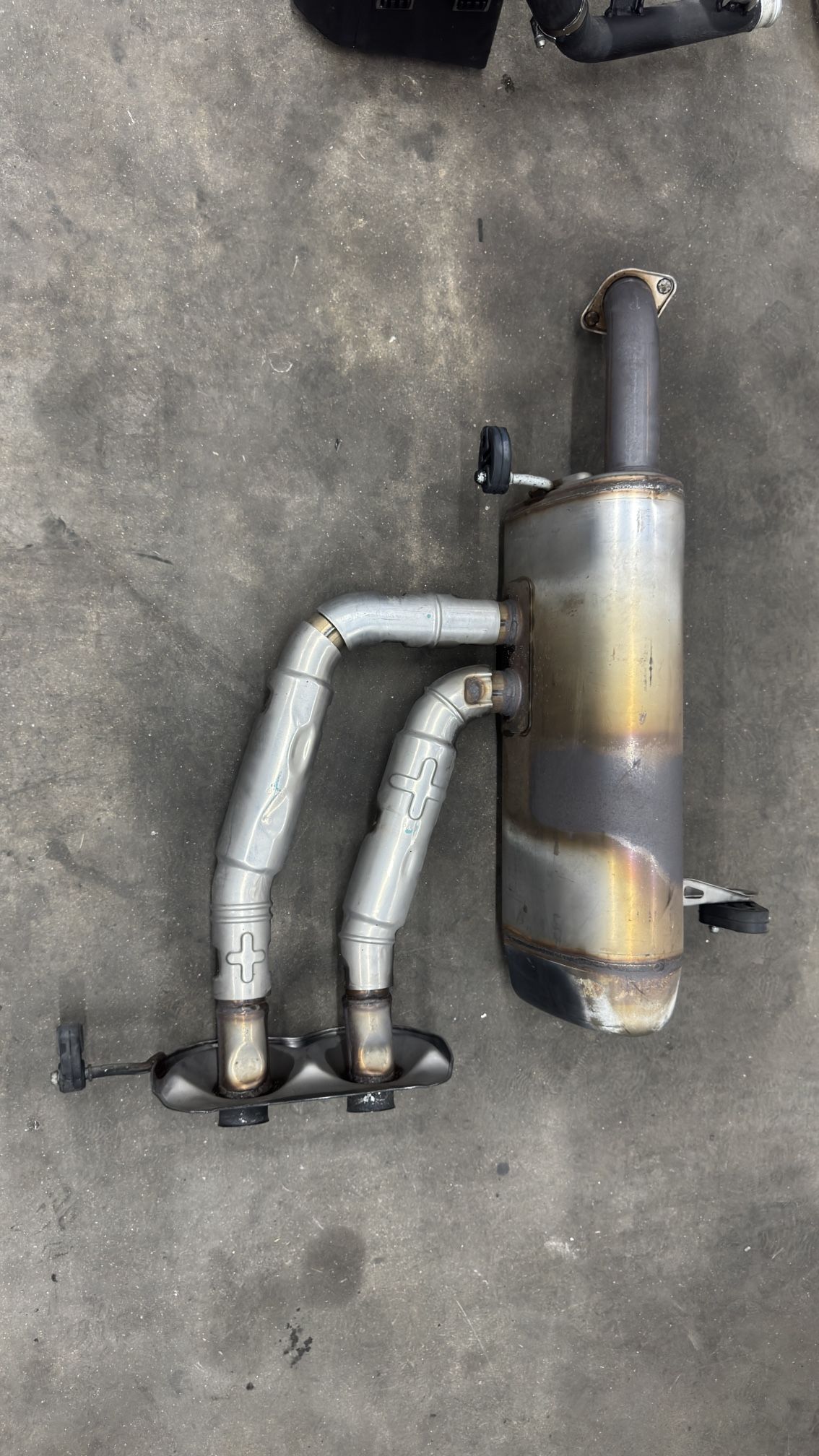 OEM rear muffler assembly from a 2013 Veloster Turbo with the factory dual exhaust tips. ✅ TURBO model only — dual tip design ✅ No holes, no rust-through ✅ Rubber exhaust hangers included ✅ Stainless construction, still in great shape ✅ OEM Part # 28750-2V100 ✅ Fits 2013-2017 Veloster Turbo Great if you went aftermarket and want to go back to stock, or need a replacement. Local pickup preferred. Can ship at buyer’s expense (heavy). Tags: Veloster turbo exhaust, muffler, dual tip, OEM exhaust, 2013 2014 2015 2016 2017 Veloster