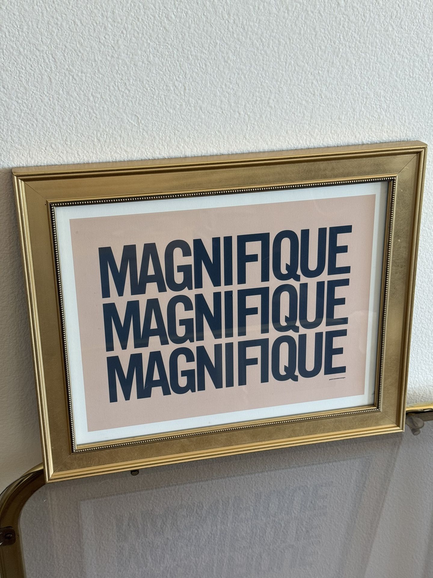 Gold wood frame and art print. Not sold separately. Outer frame: roughly 16.5x13.5in Inner frame: roughly 13.5x10.5in
