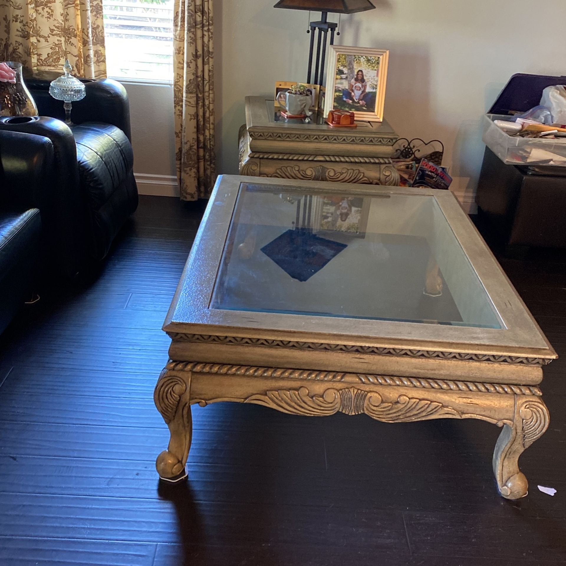 Beautiful good work glass top coffee table has a litle scratch on a corner but still beautiful.