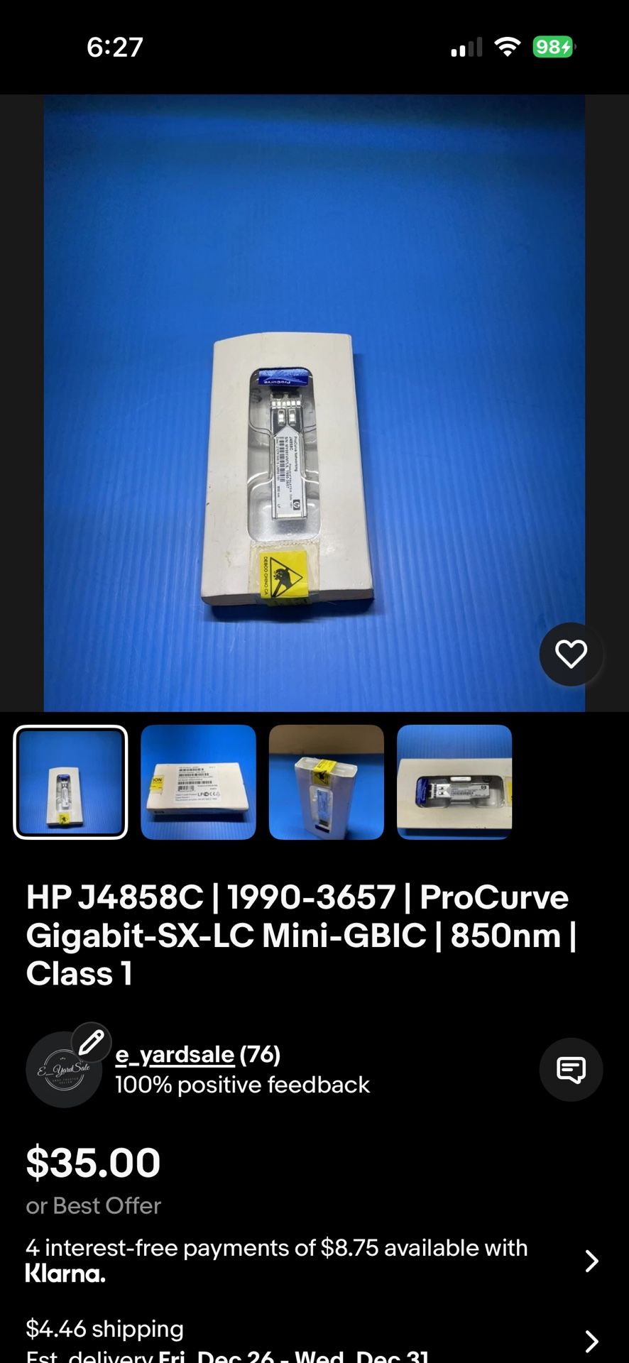 HP J4858C | 19/90-36/57| ProCurve Gigabit-SX-LC Mini-GBIC | 850nm | Class 1
