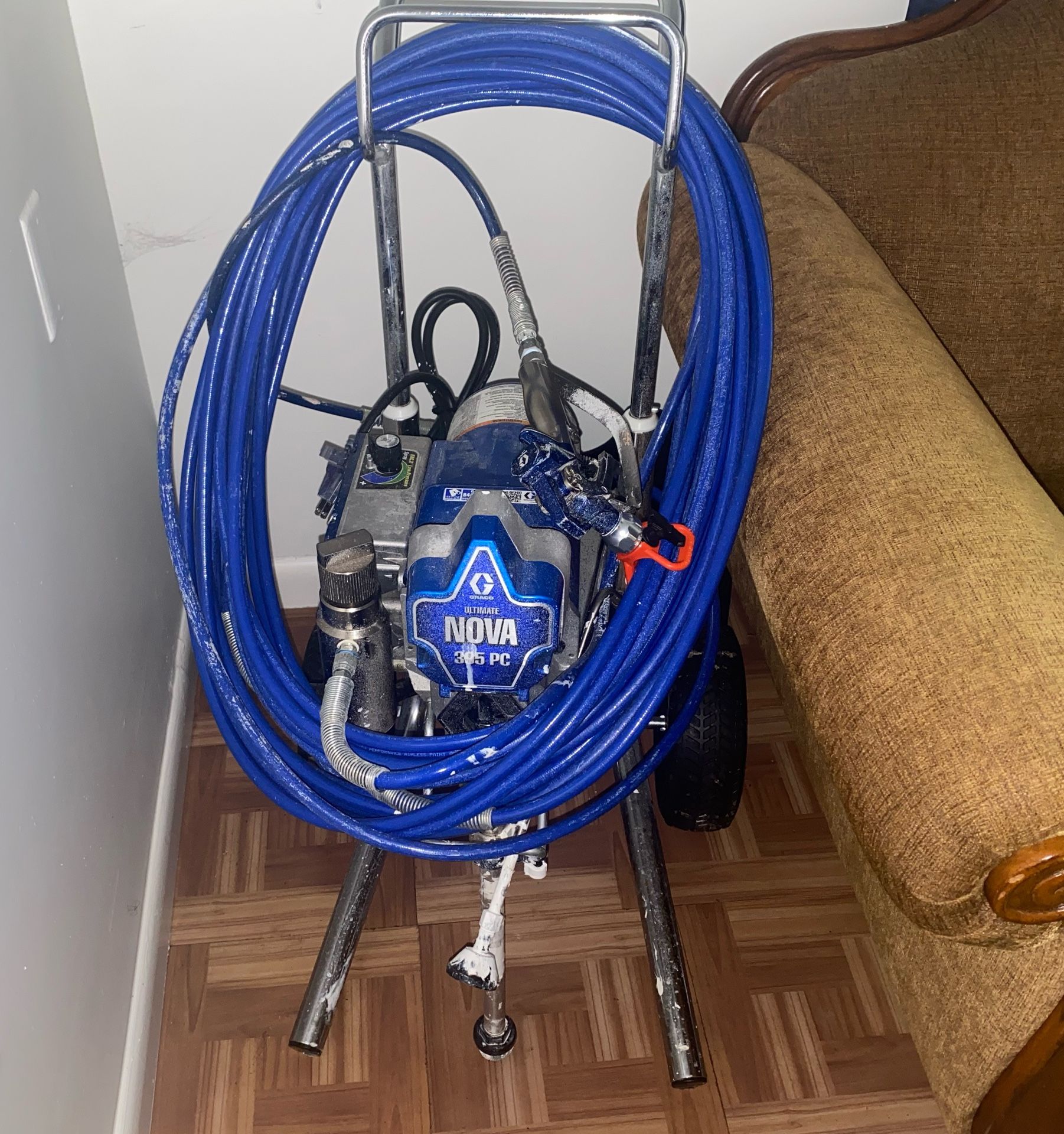 EXCELLENT LIK NEW CONDITION ◀️ GRACO ULTIMATE NOVA 395 PC PAINT SPRAYER💙🩶 ▪️USED ONCE ▪️ELECTRIC ▪️100 FEET HOSE ▪️GRACO GUN ▪️NEW HOUSING ▪️NEW 415 TIP