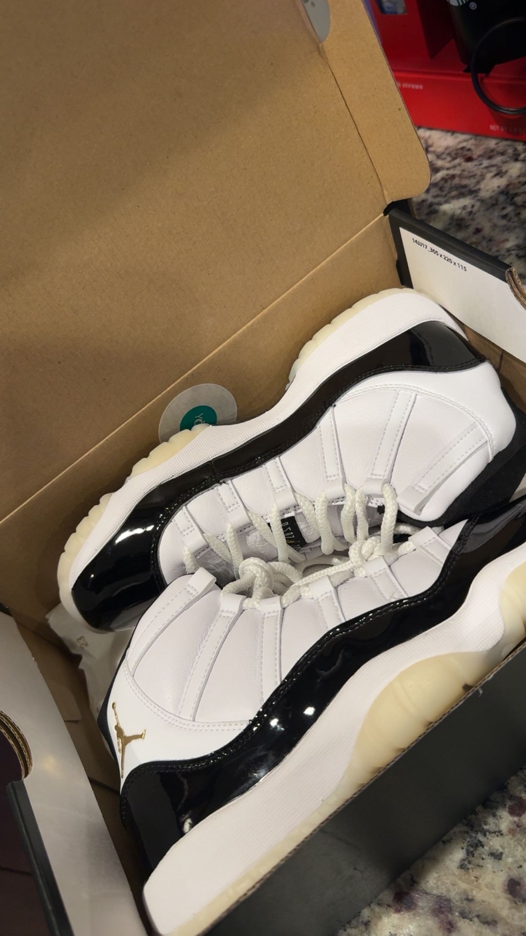 Brand New Jordan 11 Retro Gratitude (2023) size 6.5Y Black/White/Metallic Gold color. Comes with box never worn .
