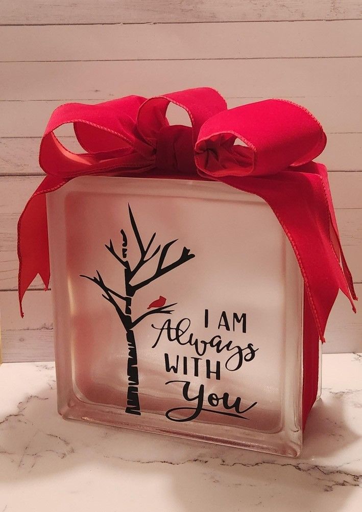 Handmade frosted glass block (without lights) that states "I am always with you" and a cardinal in a tree. Has handmade bow on top. **Must be able to meet around Potranco and 1604 area for pick-up. **