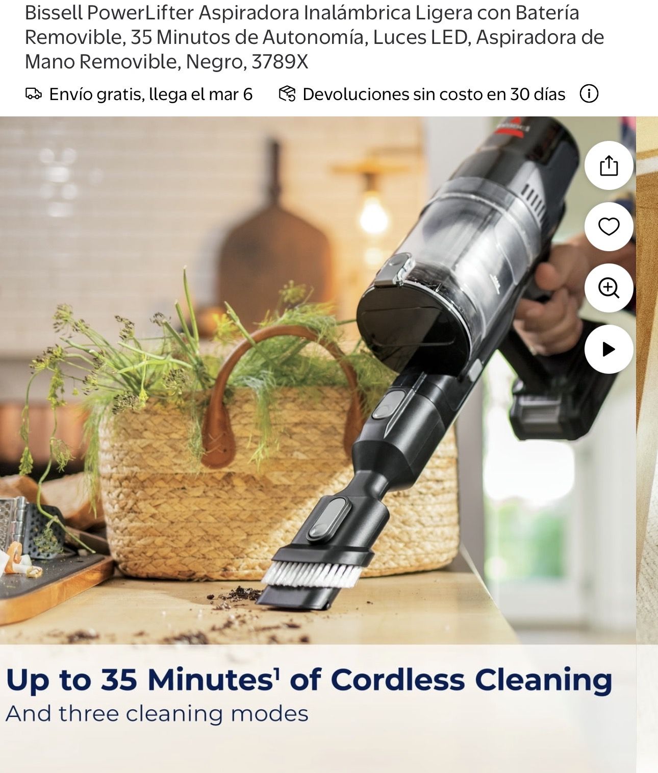 Aspiradora Bissell PowerLifter Aspiradora Inalámbrica Ligera con Batería Removible, 35 Minutos de Autonomía, Luces LED, de Mano Removible, Negro, 3789