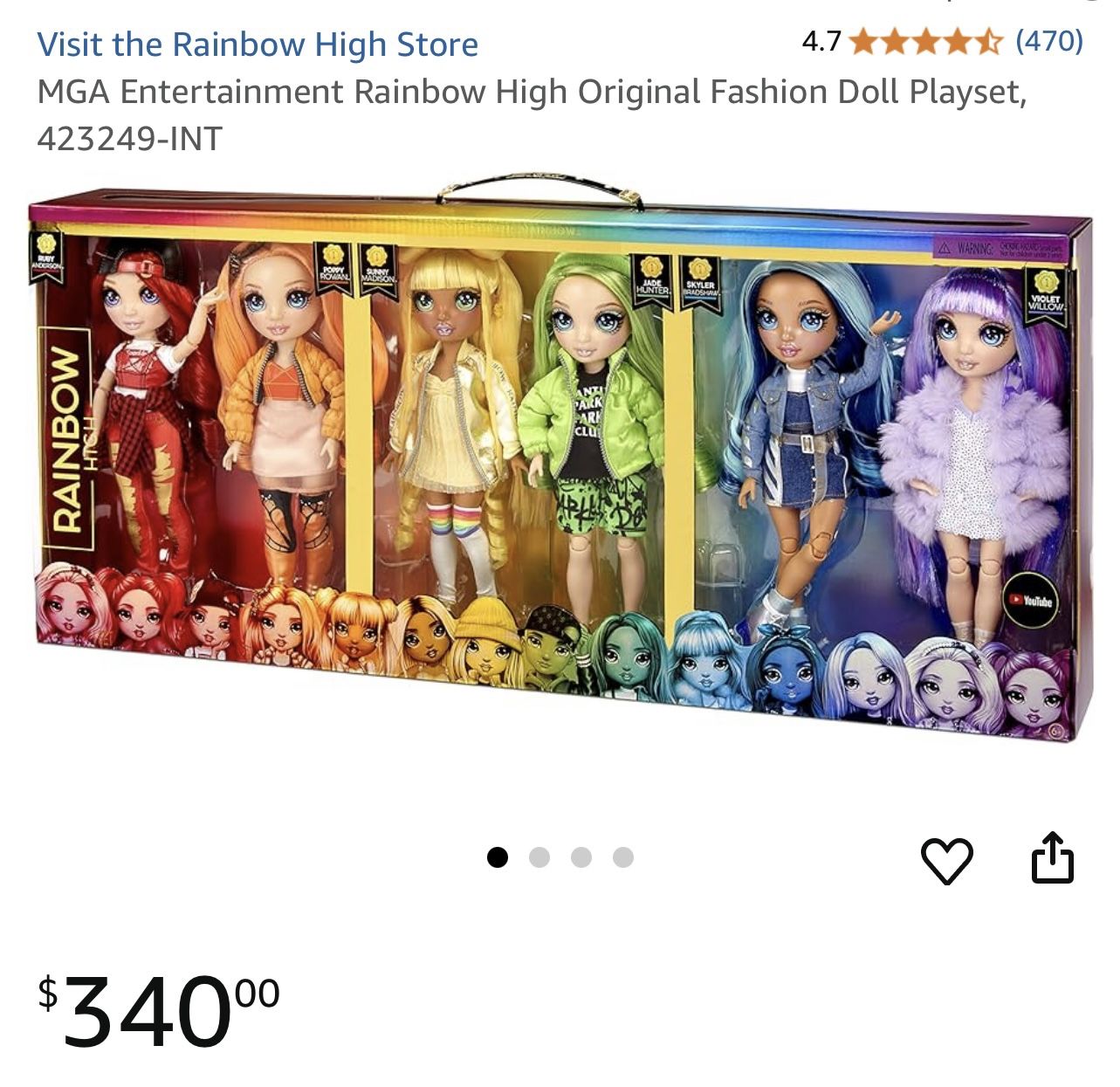 New! Rainbow High 6 Original Dolls Set. Price for $340 at Amazon. Final sale. Please see all pictures as they are part of the description.