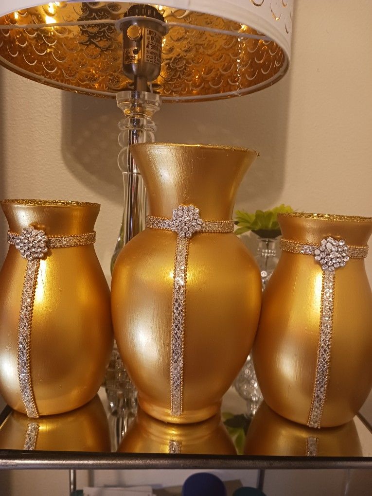 3PC GOLD VASES