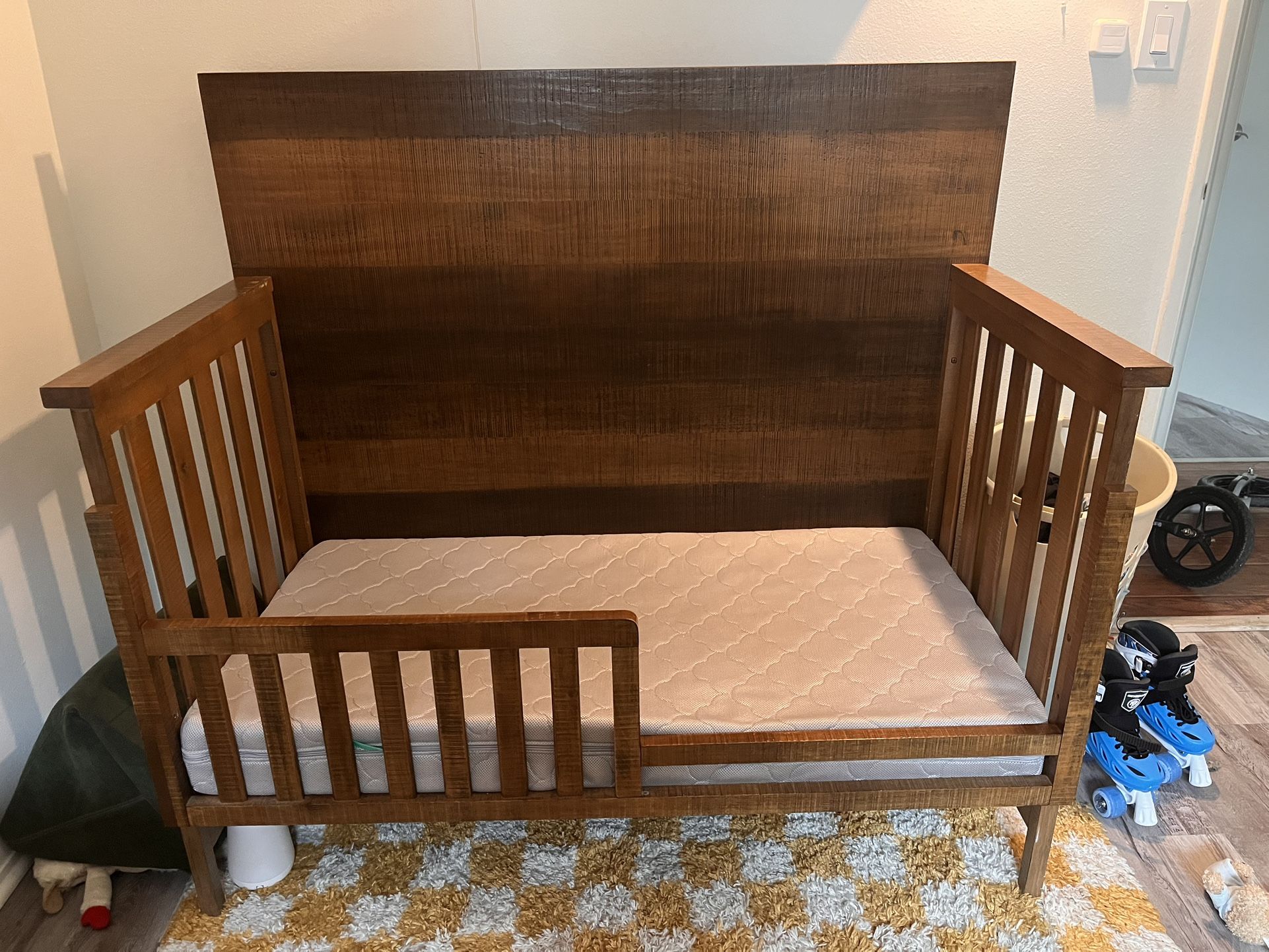 Selling a toddler bed. It’s pretty solid wood just has some wear and tears.