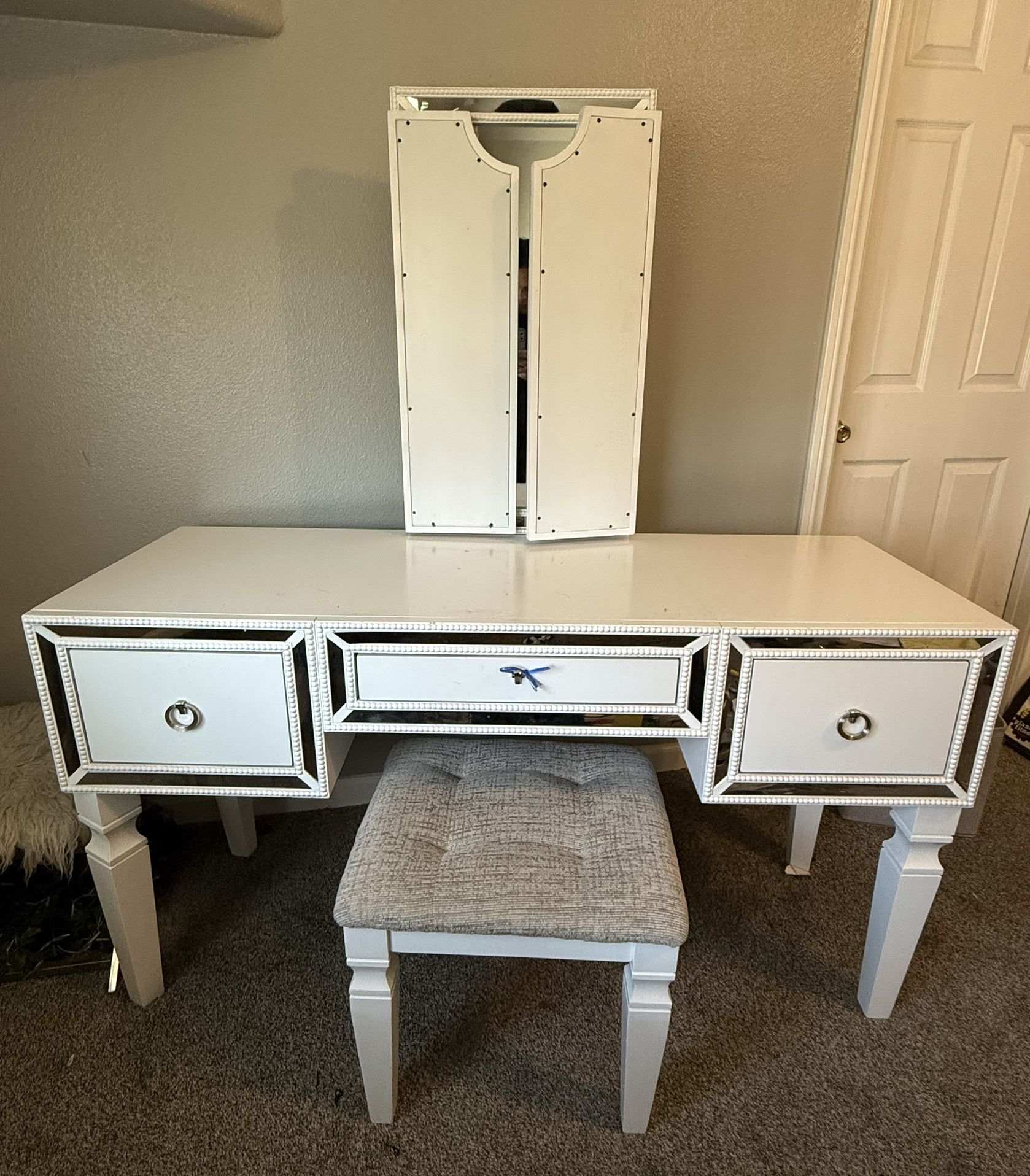 White vanity with drawers