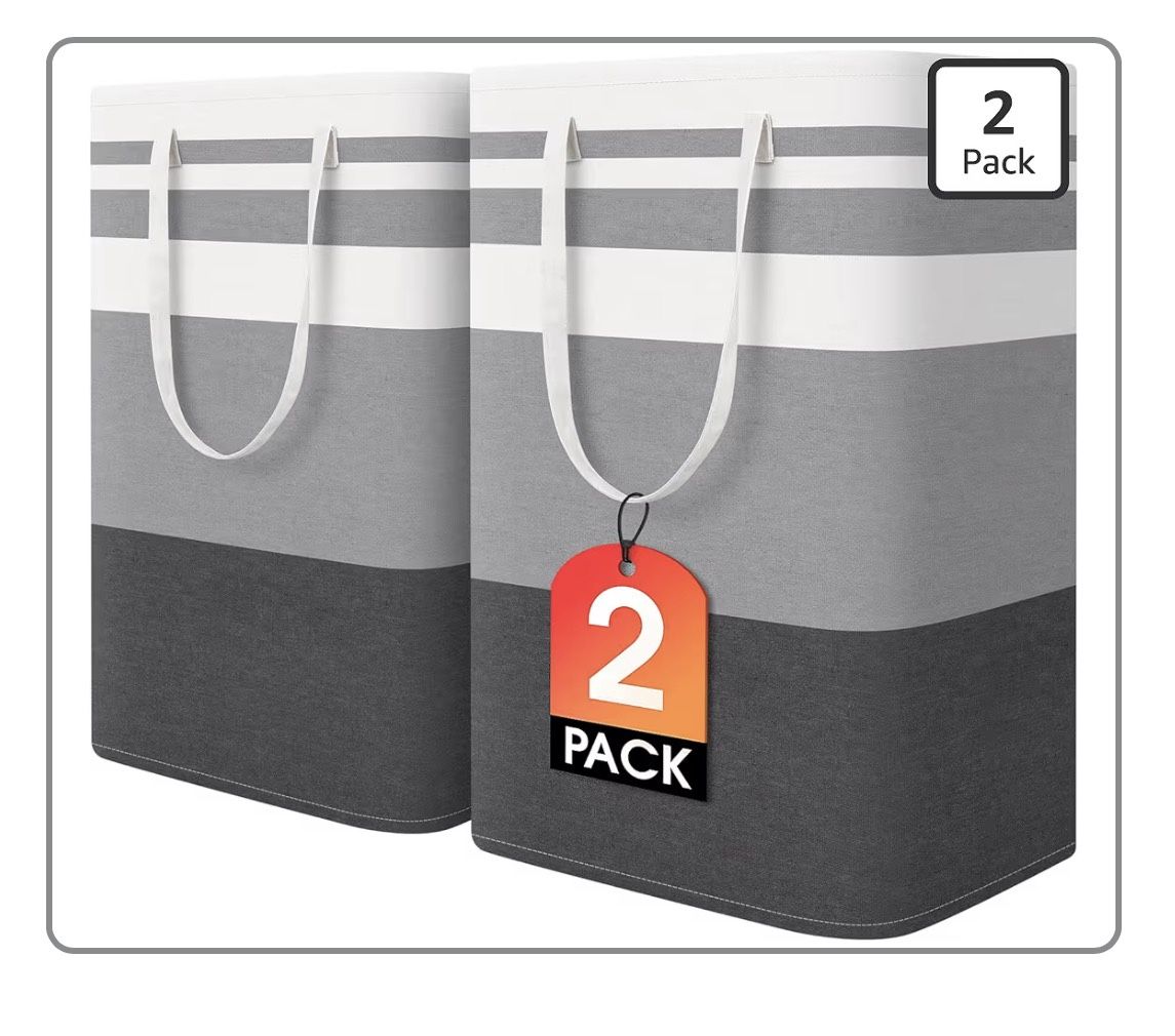 Brand New 2 Pack Large Laundry Baskets, Waterproof, Freestanding Laundry Hampers, Collapsible Clothes Hamper with Reinforced Handles