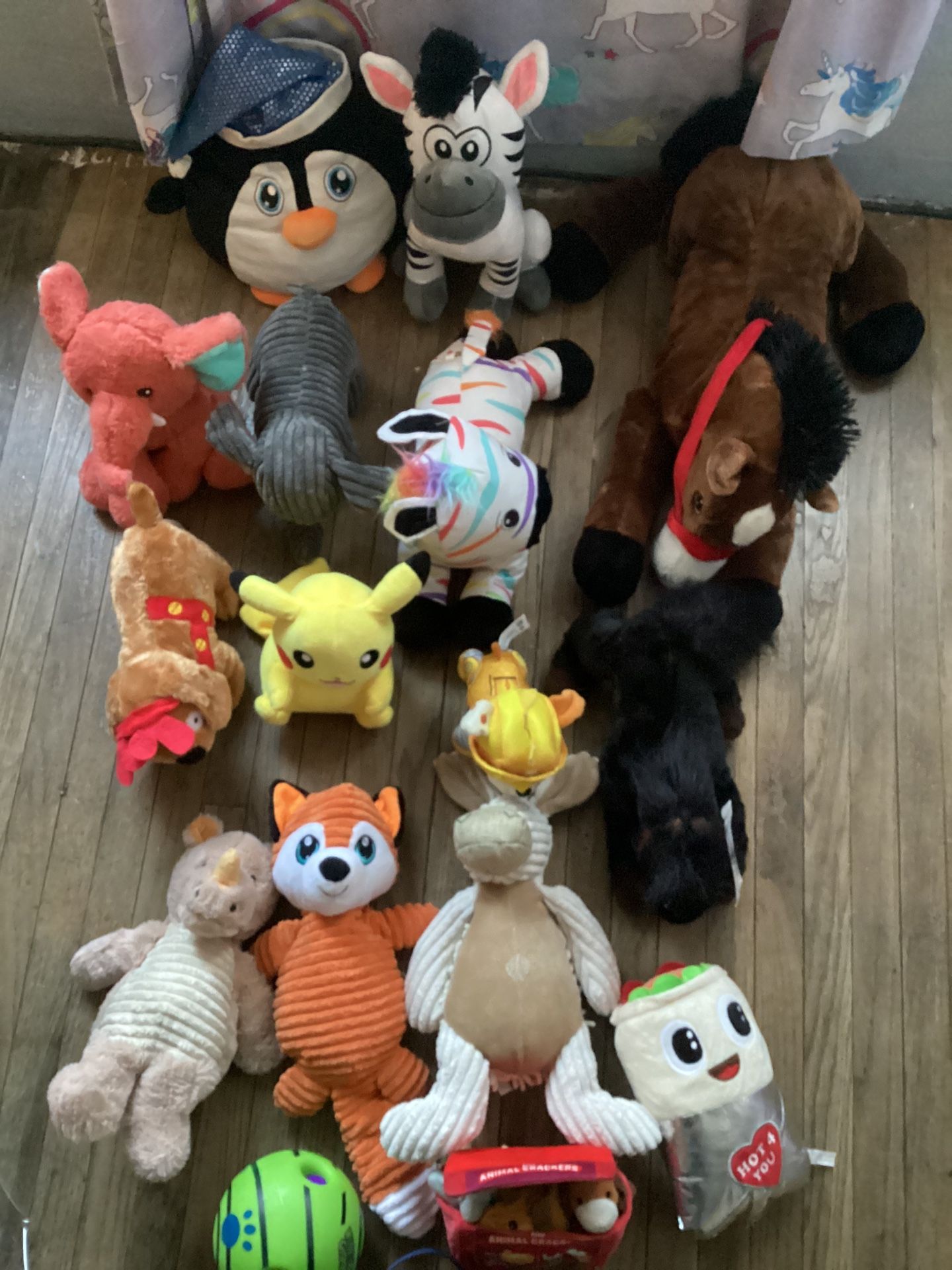 Hello I have these dog toys in great condition, total of 17 pieces. $5 each or if you would like to take all I can make you a deal!! Feel free to check out my page for other stuff // baby // kids // toddler // other general household// clothes // shoes…etc stuffs at an affordable price !!!