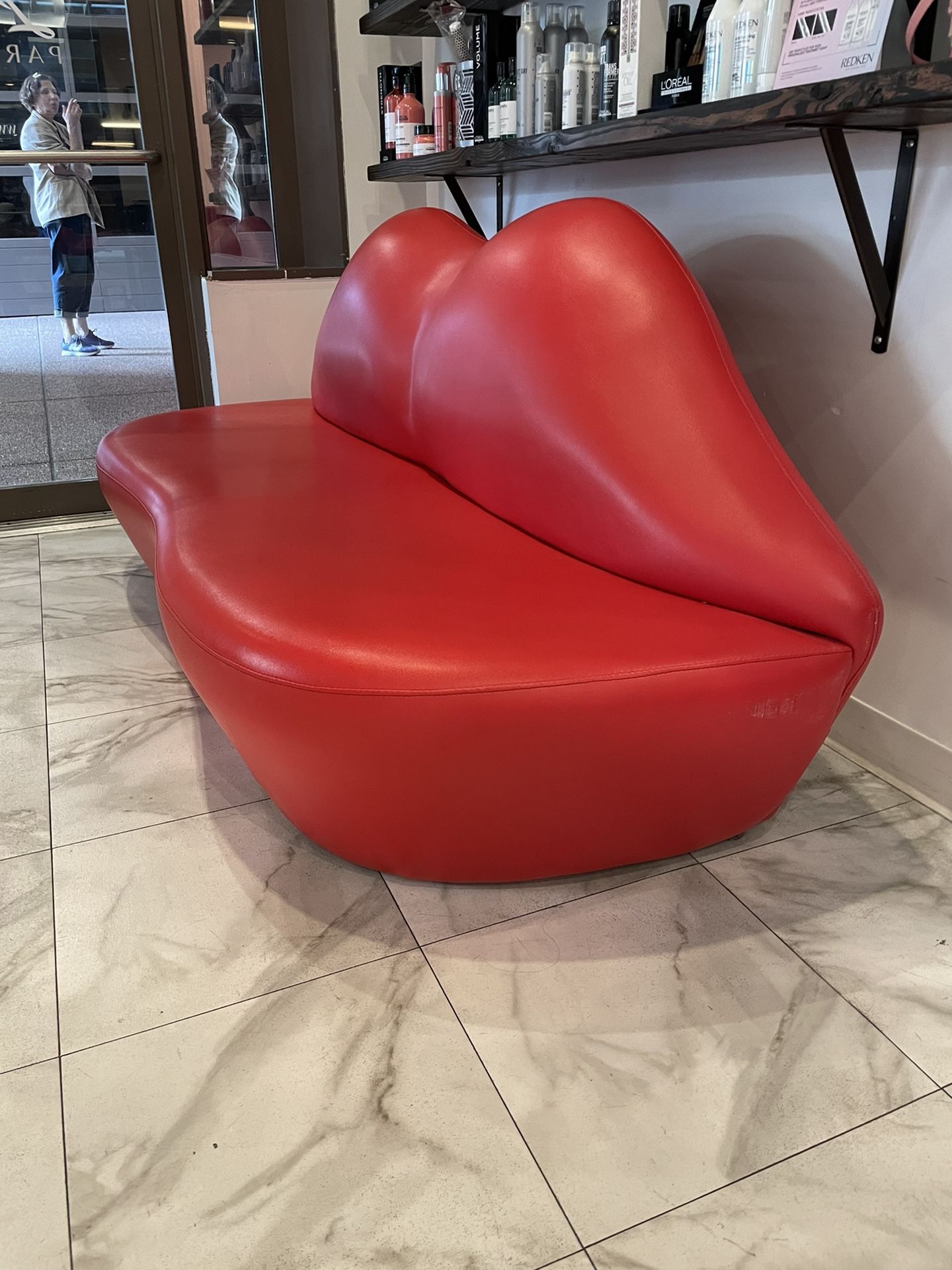 Charming and cute, this sofa features a delightful lip shape. The eye-catching red upholstery adds vibrancy to this sofa. Brand new like condition. Original Price: $1400 Price: $850 obo Dimensions W: 80.8" D: 32" H: 33"