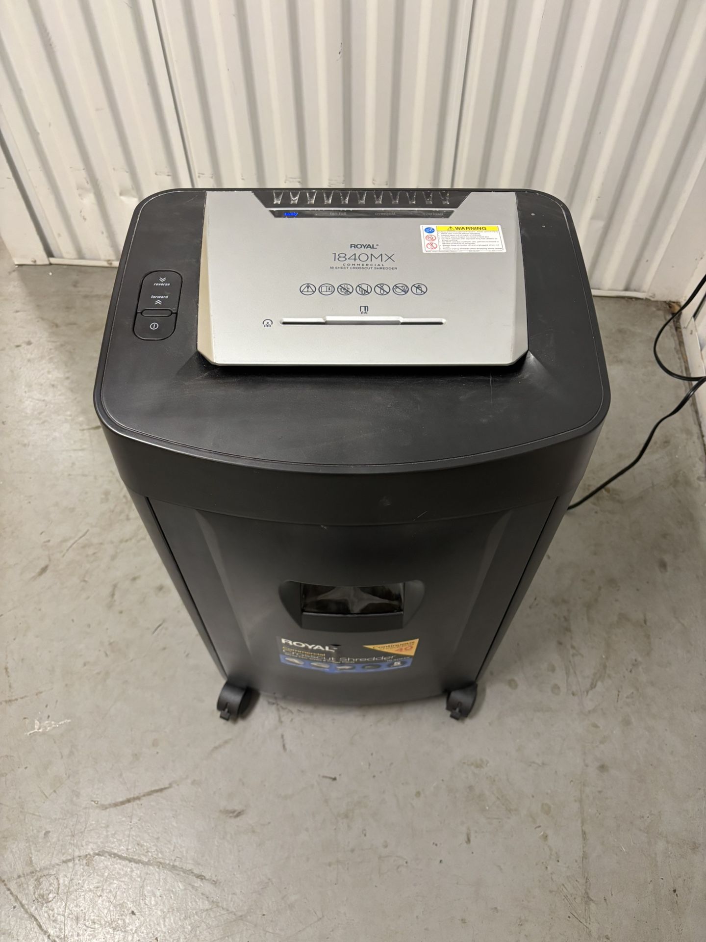 I can deliver for a fee. Also,Feel free to negotiate! This Royal Platinum series shredder accepts 18 sheets at a time to expedite the shredding process. It can shred credit cards, CDs, DVDs and more for maximum security. Cross-cut heavy-duty shredder accommodates credit cards, CDs and DVDs for versatile performance. Shreds up to 18 sheets per pass and runs up to 60 minutes, so you can quickly complete tasks. Pull-out wastebasket holds up to 8.5 gallons of shredded material, reducing the need for constant emptying. Small 5/32" x 1-1/8" cross-cut particles provide significant security.