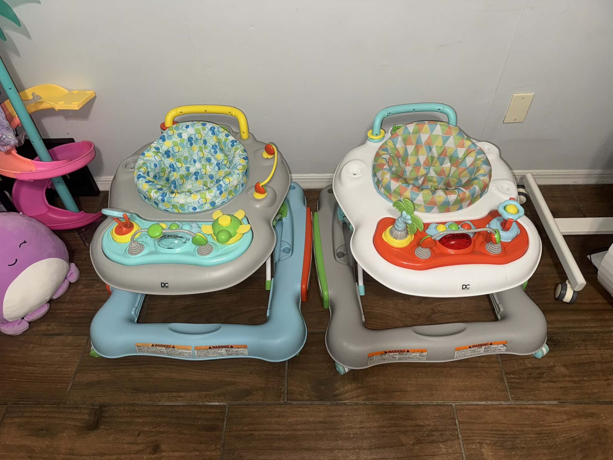 Excellent clean & working conditions 2 Smart Steps by Baby Trend Trend Activity Walkers Each $25 Removable, STEM-based toys Large surround tray with snack and cup holder space Height adjusts to three positions to grow with the baby Folds flat for easy transport and storage Extra-wide base provides stability Recommended Use: For infants who can sit upright on their own and are ready to learn to walk (around 6 months old).