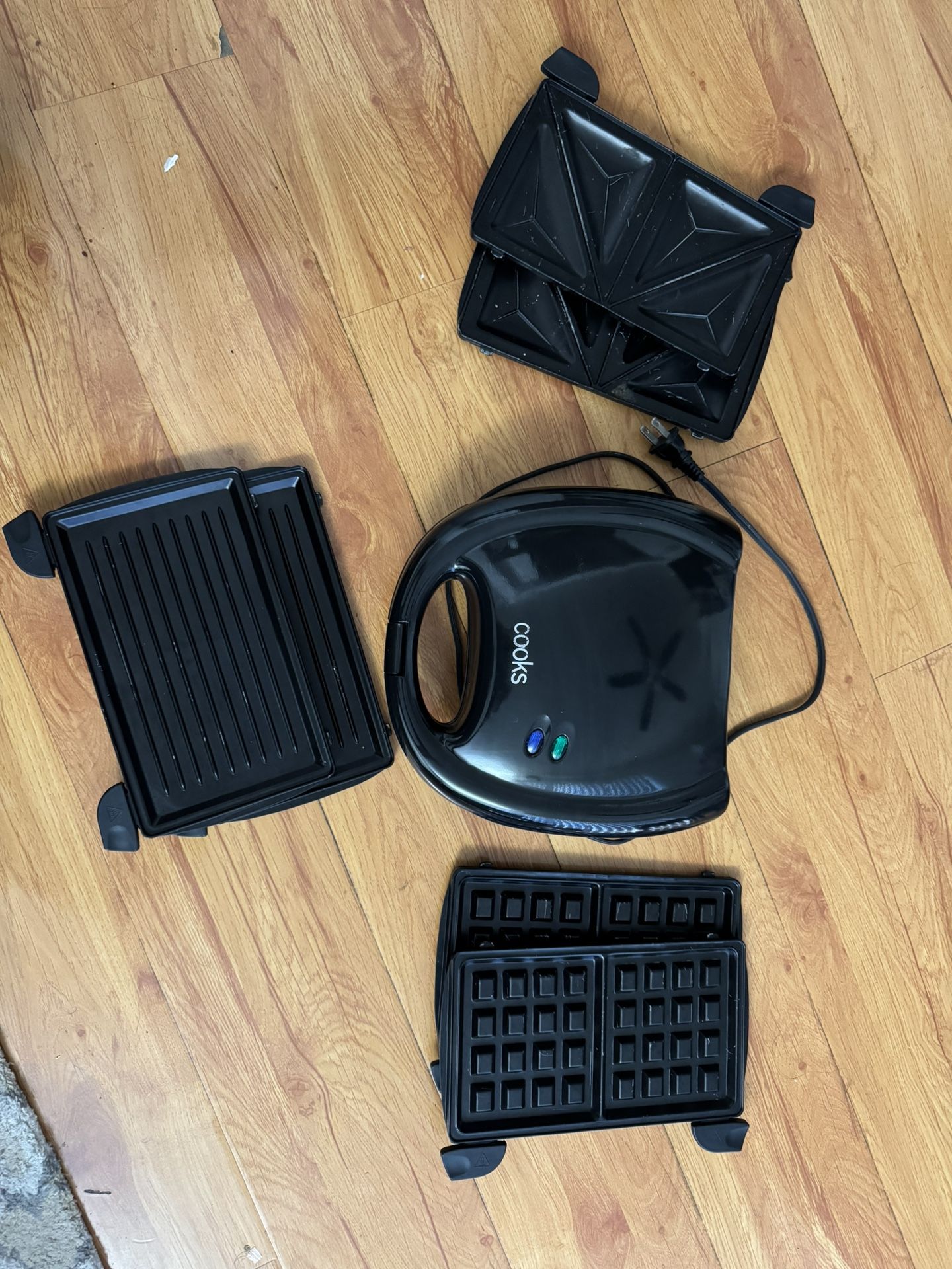 3 interchangeable toaster, waffle maker & grill. Gently used.