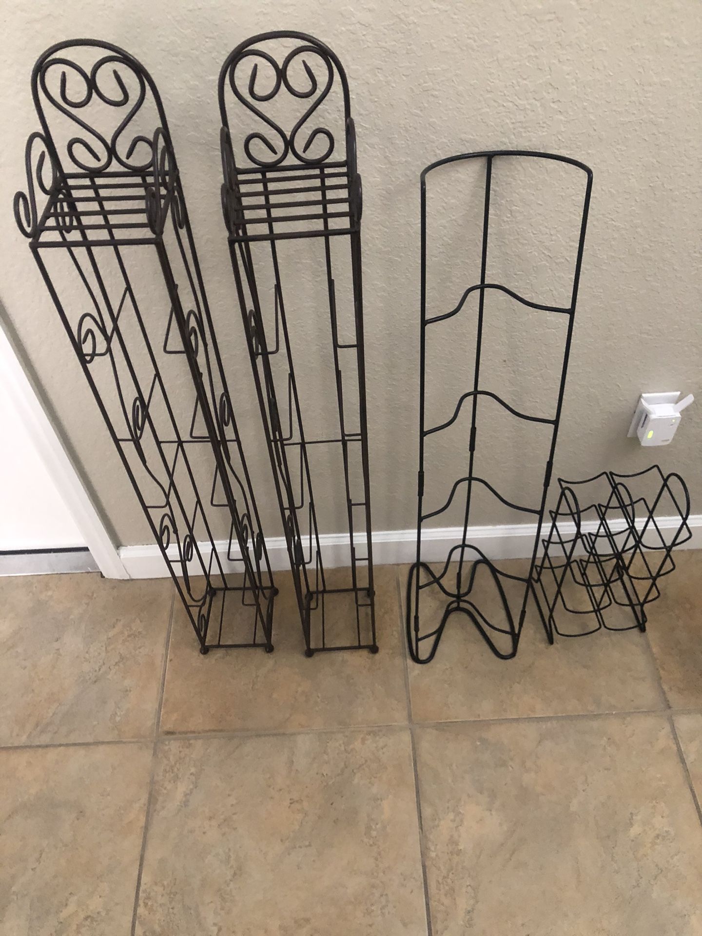 Item Racks, first one can be used for CDs, second one for Movies, third for wine. $40 total or $15 each.