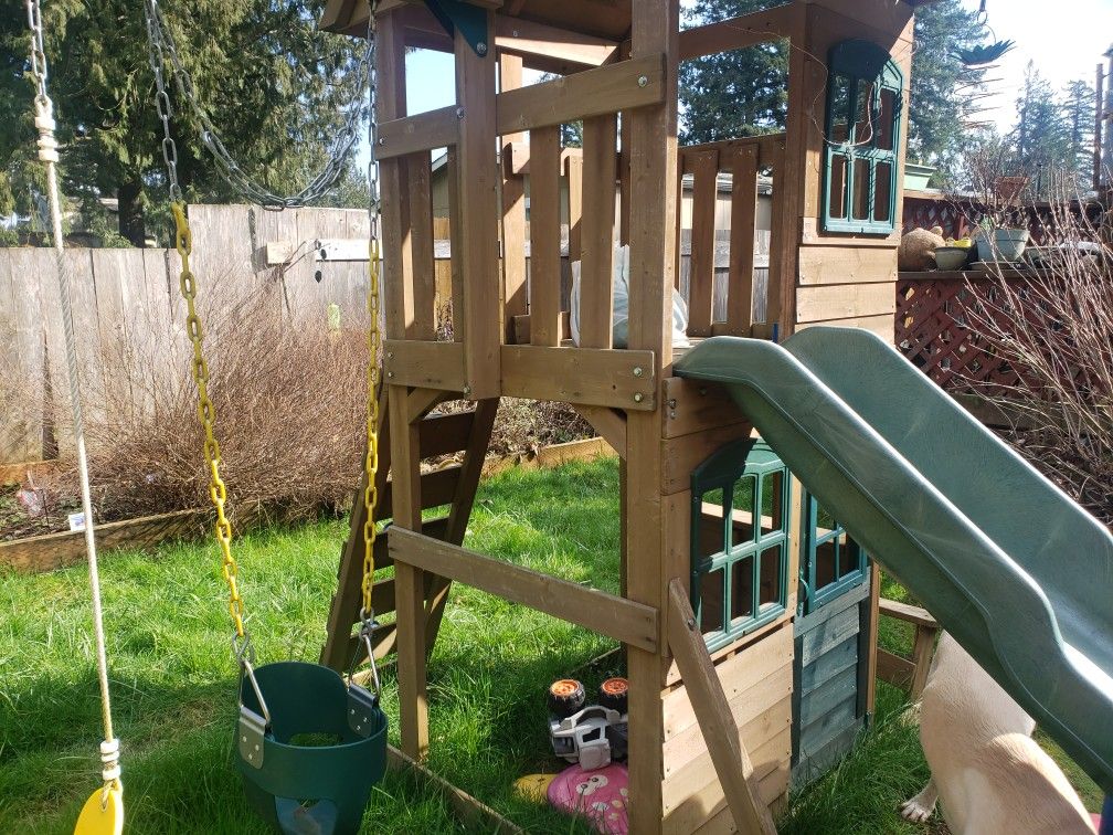 Wooden backyard swingset with slide. Great condition. You will need a truck to haul it. I will have it taken apart in 3 pieces.