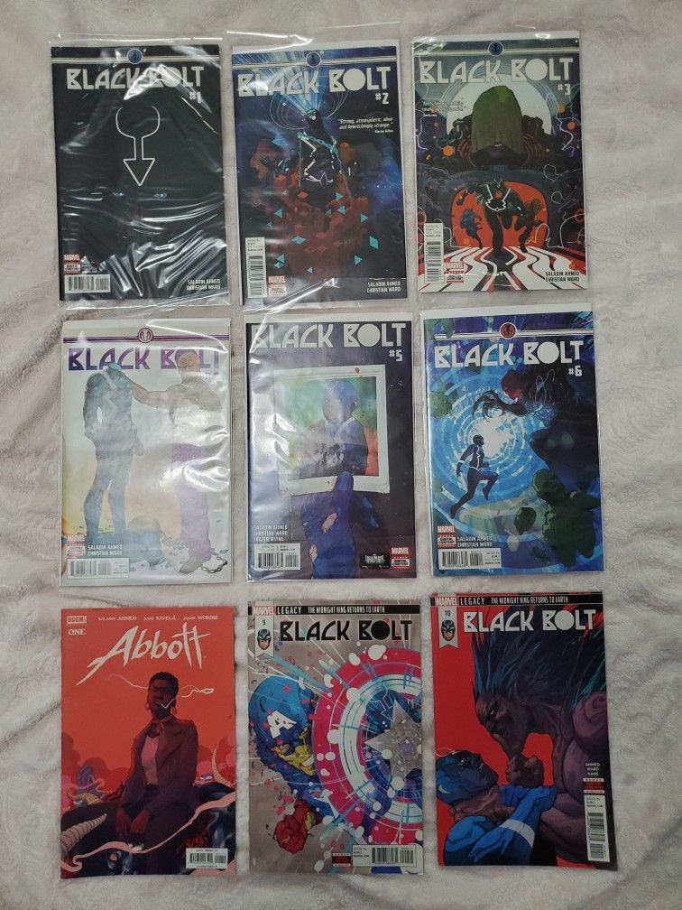 Black Bolt Marvel Legends issues #1-6, 9 & 10 + Abott #1. (9 comics total). 1-6 NEW