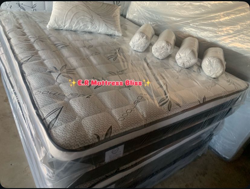 ✨Mattress Pillow Top All Sizes ✨ ☑️ 12” inches tall 🟠Queen sizes $150 🟡Full sizes $140 🟢Twin sizes $120 🔵Cal king $260 🟣E. King $260 🔴Delivery Available Fee $20 or $40🚛📍