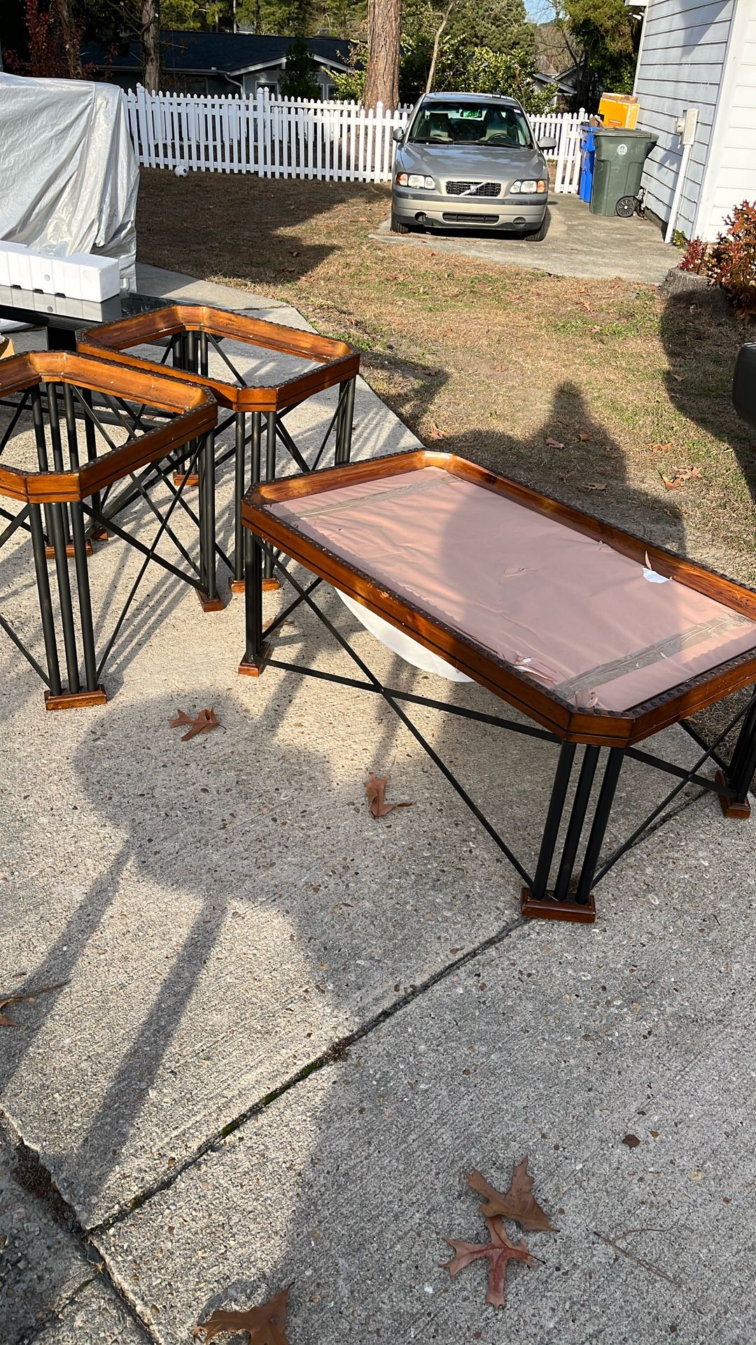 Whole set solid wood and metal heavy duty will have glass for end tables on Sunday coffee table and end tables