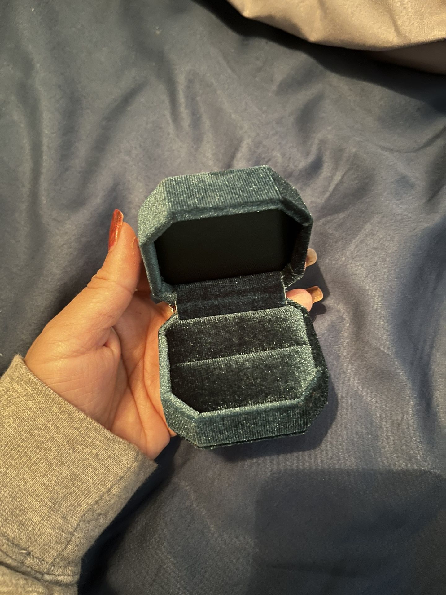 Teal Velvet Ring Box – Elegant Octagon Jewelry Case