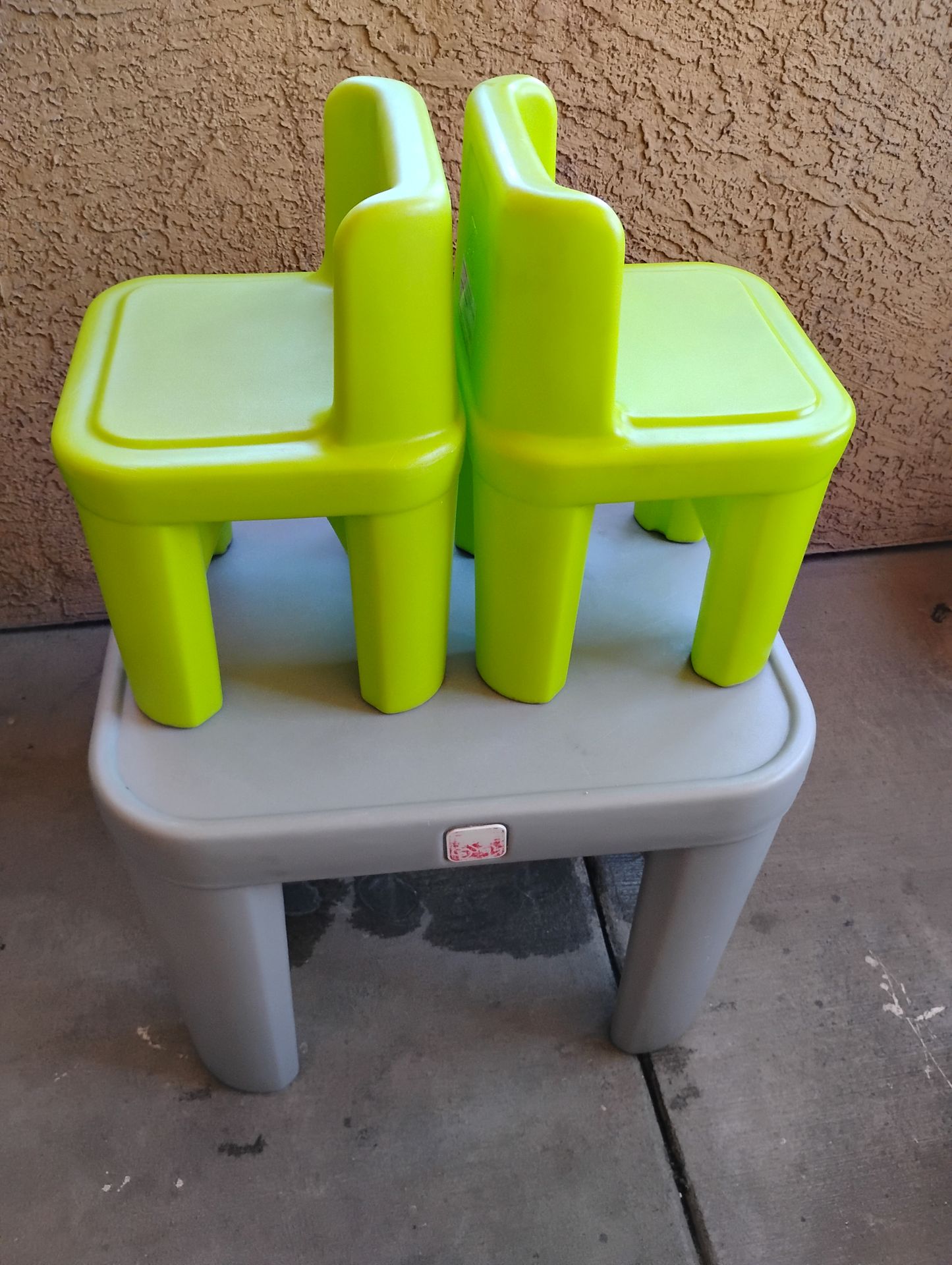 Little tikes table and chairs for toddler size children. Very sturdy and clean.