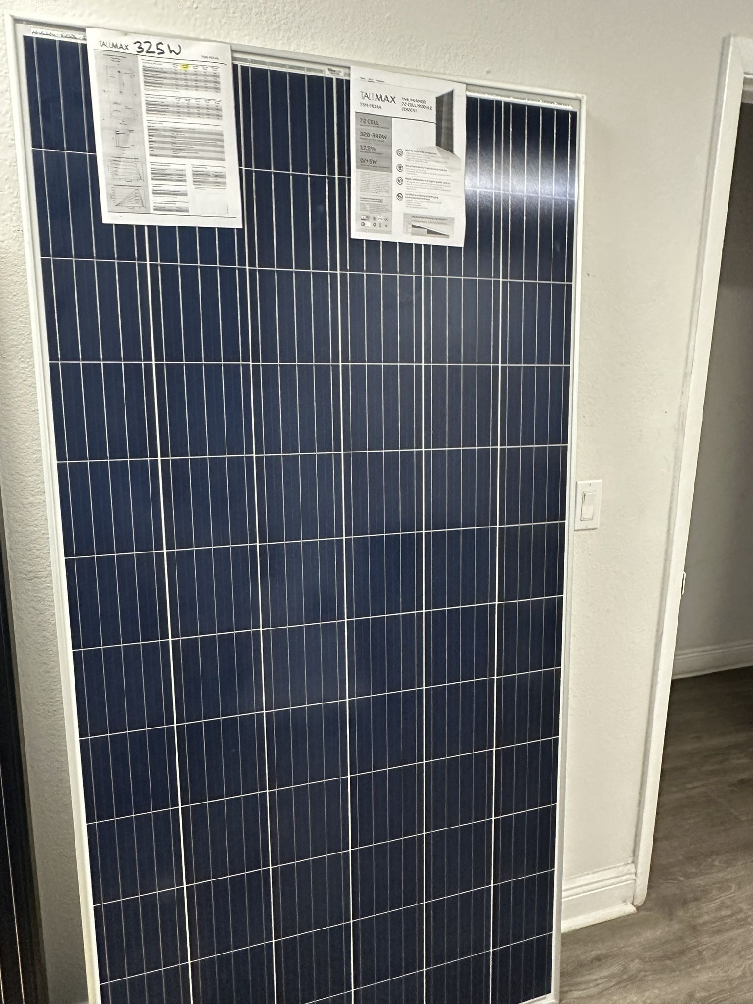 Used Solar panels testing like new Polly Weather resistant. Certified for salt mist and ammonia resistance Anti-Reflection surface treatment. 79x 39 Buy More For Best Price! SERIOUS INQUIRIES ONLY!! No returns on these items