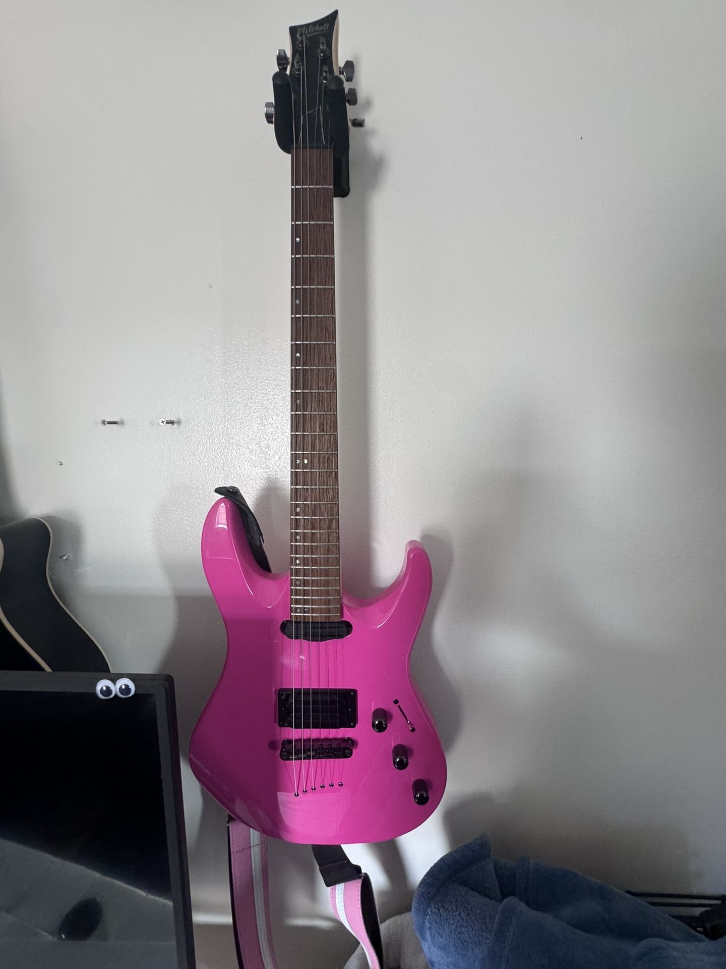 Got it a few months ago for my girlfriend to learn guitar and it’s just been hanging on the wall. Restrung and plays great. I play heavier music and these are light strings I just don’t really have the need for it. I’m open to trades for other 6 strings or especially a headrush 112 or frfr powered cabs.. just shoot me an offer! open to anything. Strap might be included based on offer, I also have Earnie ball braided pink angled guitar cord!!