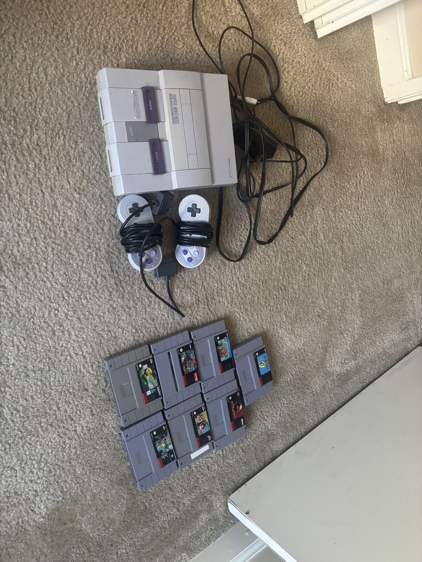 Super Nintendo 2 wired controllers Super Mario World Super Mario Cart Mortal Kombat Street Fighter 2 Spider Man and X-men Frogger Battletoads and Double Dragon