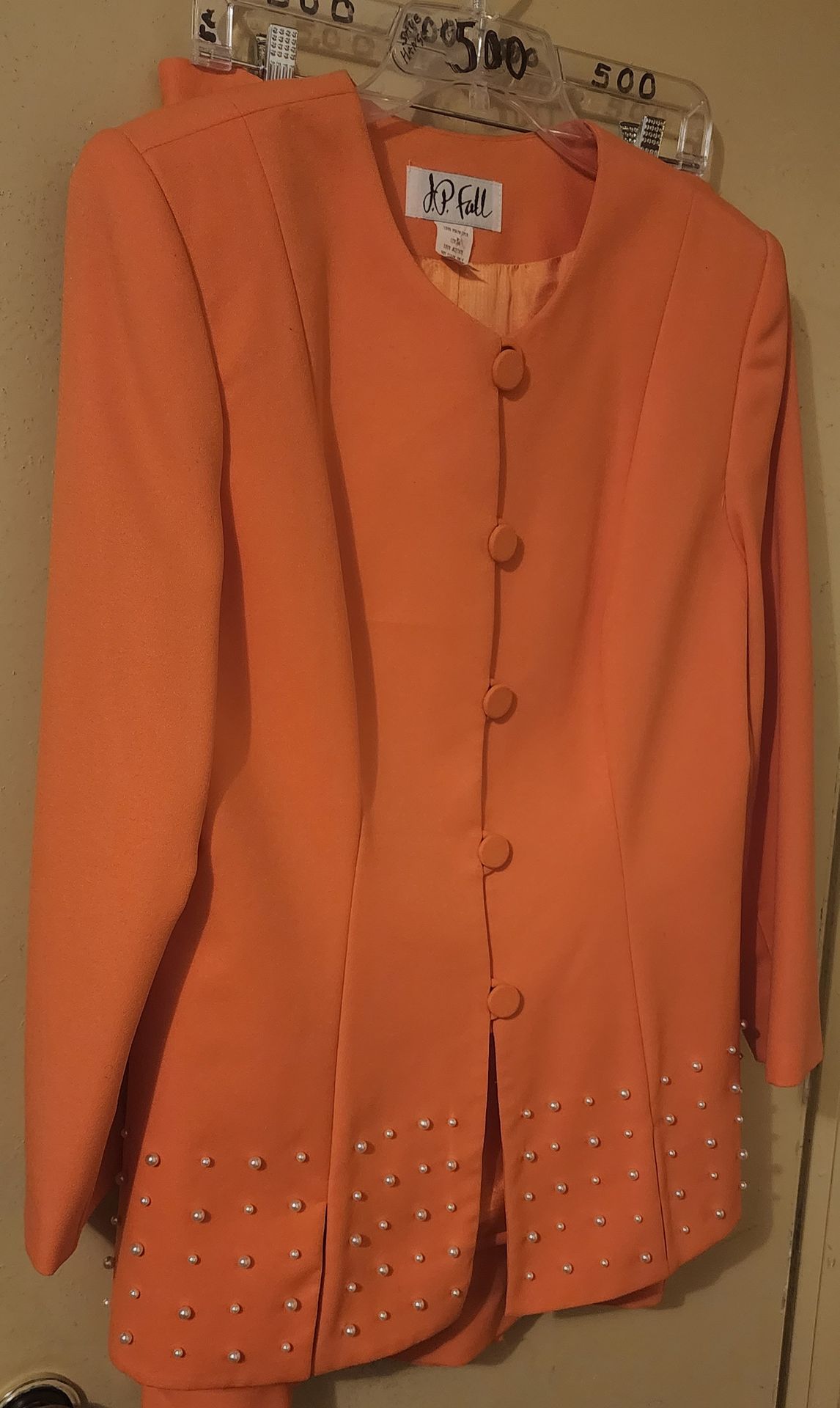 2pc Orange Skirt Suit w/ Pearls