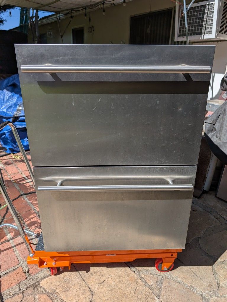 Used working condition. Summerset outdoor 24-in drawer refrigerator in good working condition. 23 and 1/2 in wide. 34 in tall and 24 in deep 304 Stainless Steel is Weather-Resistant and Easy to Clean Electronic Temperature Control System and Interior LED Lighting Black Interior Cabinet w/ Stainless Steel Soft Closing Drawers Auto Defrost 114 Can Capacity The 24 Inch Outdoor Rated 2-Drawer Refrigerator offers 5 cubic feet of storage, #304 Stainless Steel Soft Closing Drawers, Electronic Temperature Control w/ Digital Display, Front Ventilation and much more!