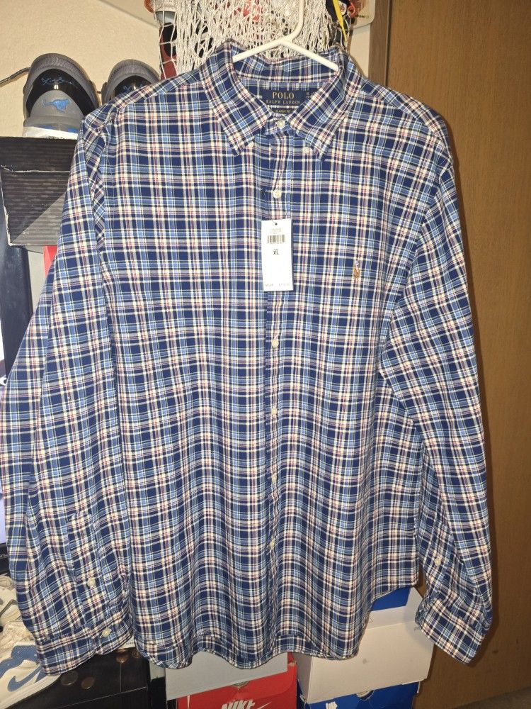 Polo Ralph Lauren Classic Blue Navy Red Plaid Oxford Long Sleeve retail for $115 Sz Xl